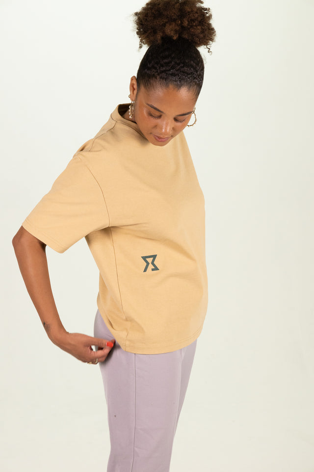 Boxy oversized fit. Ramah is 1.80 and wears a size L, Terna is 1.66 and wears a size S
